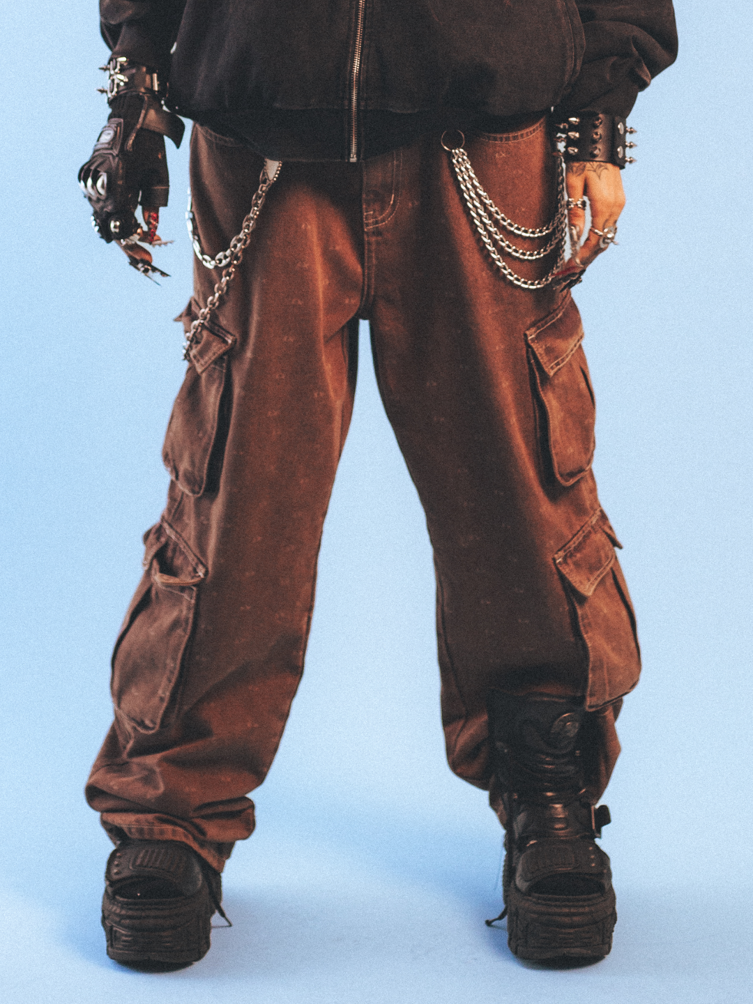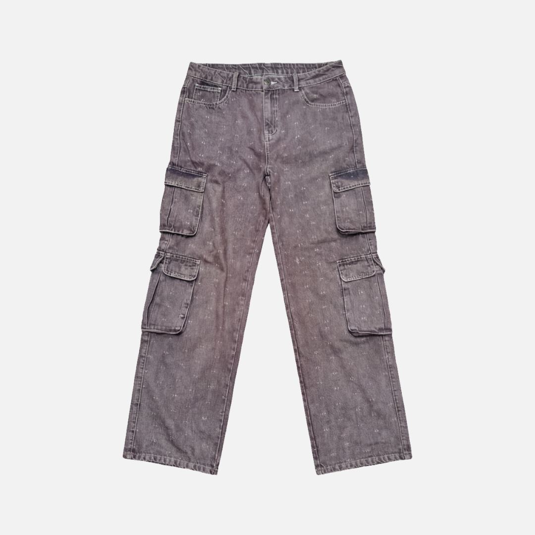 Confeccionada em jeans, a calça cargo recebe lavagem ácida que resulta em uma tonalidade marrom única, trazendo profundidade e caráter à peça.